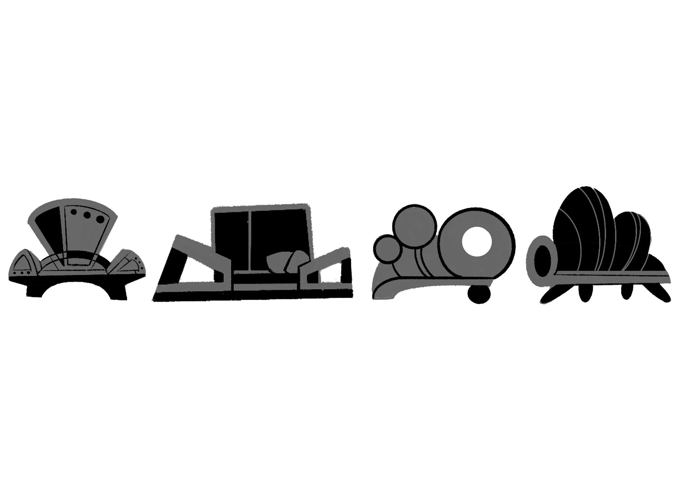 Building a prop up from silhouettes, exploring secondary shapes and divisions of those silhouettes to come to different design options. After that your prop only needs a cute little cabin to live in.